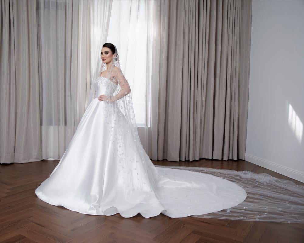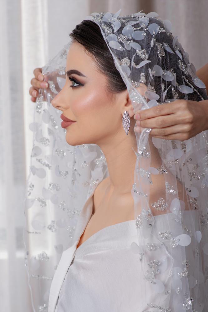 - التفاصيل: شك يدوي فاخر، تطريز متقن، إمكانية اختيار طرحة سادة أو مطرزة لتكملة الإطلالة