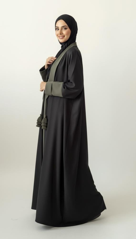 - التصميم: قصّة كلوش عصرية تمنح العباية انسيابية أنيقة.