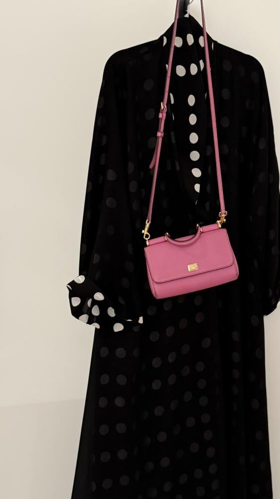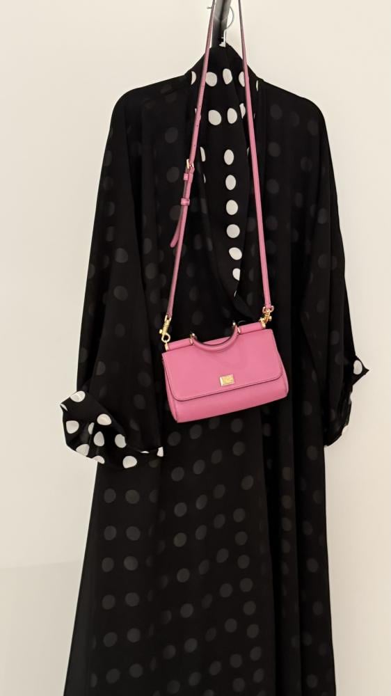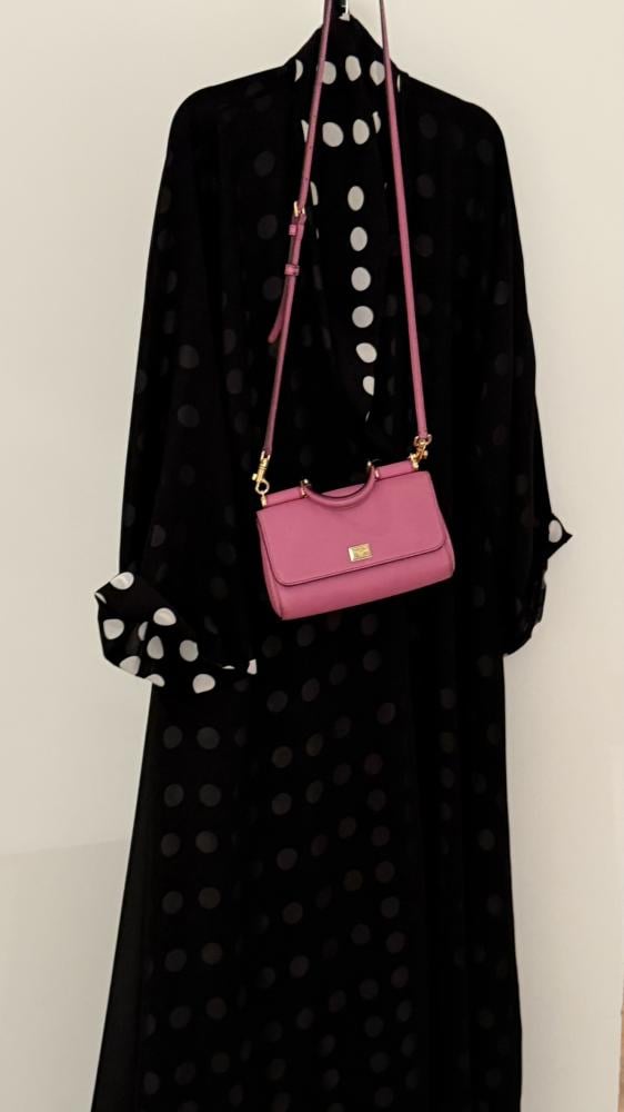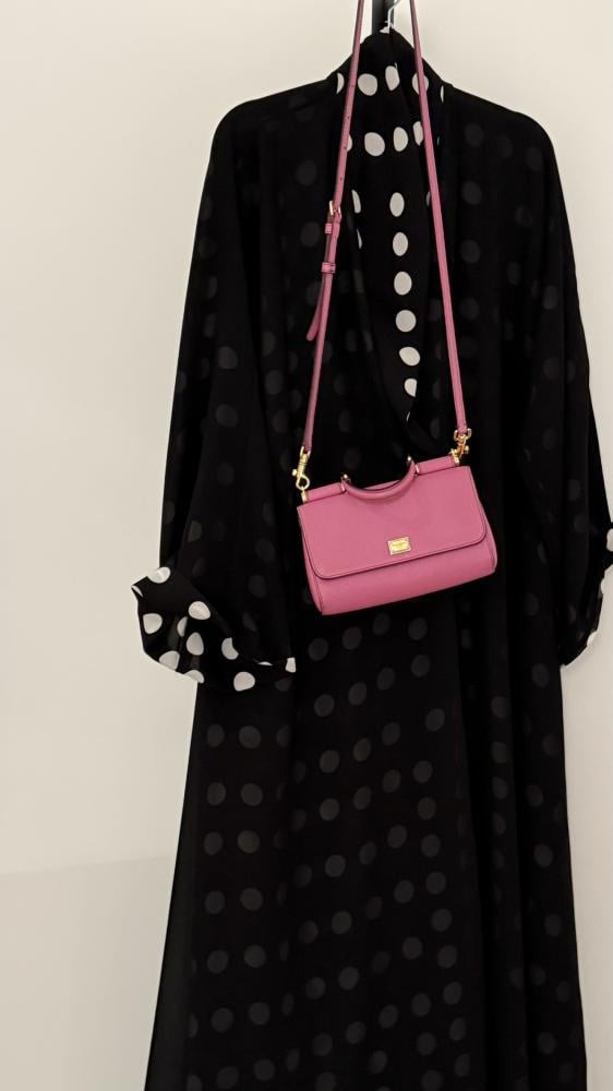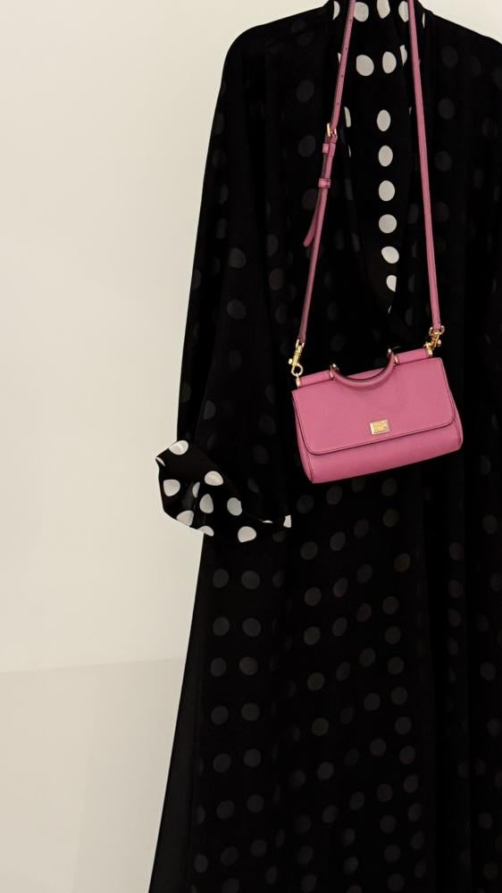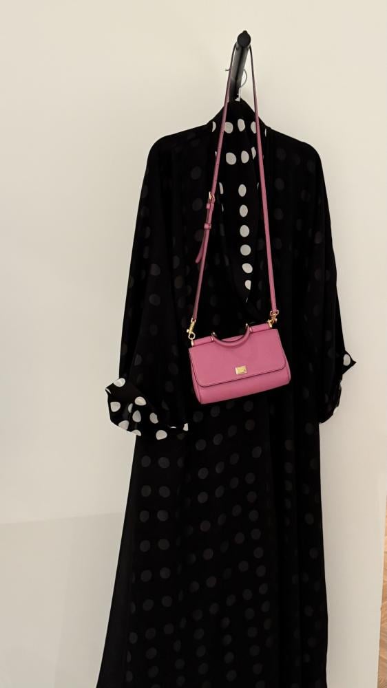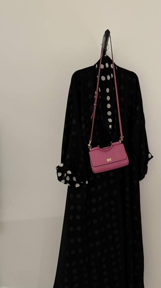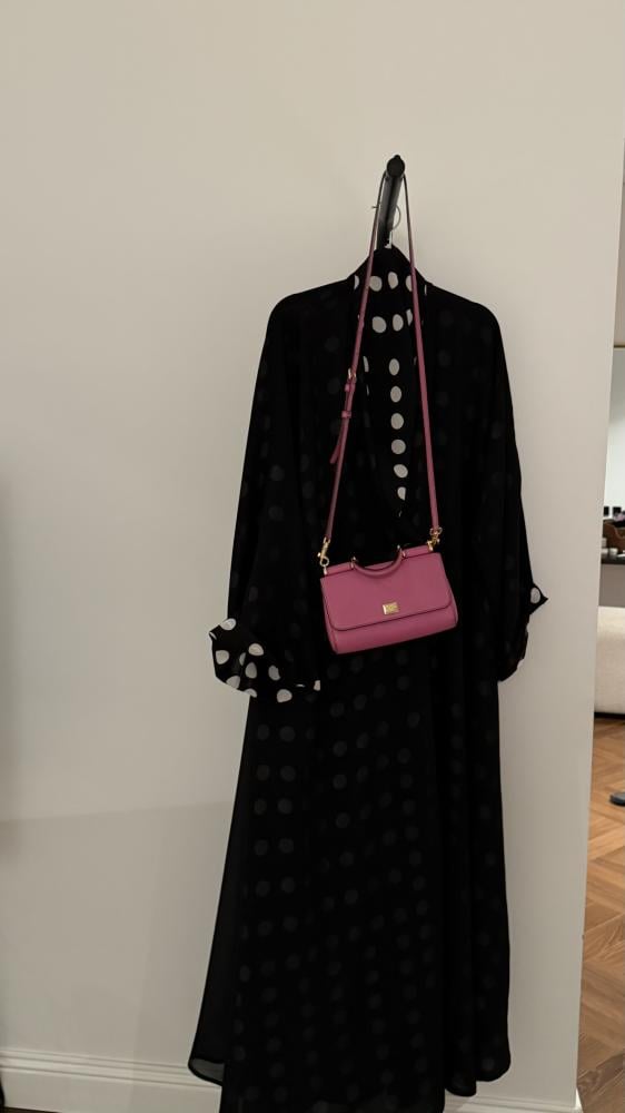 عباية شيفون اسود طبقتين منقط اسود وابيض